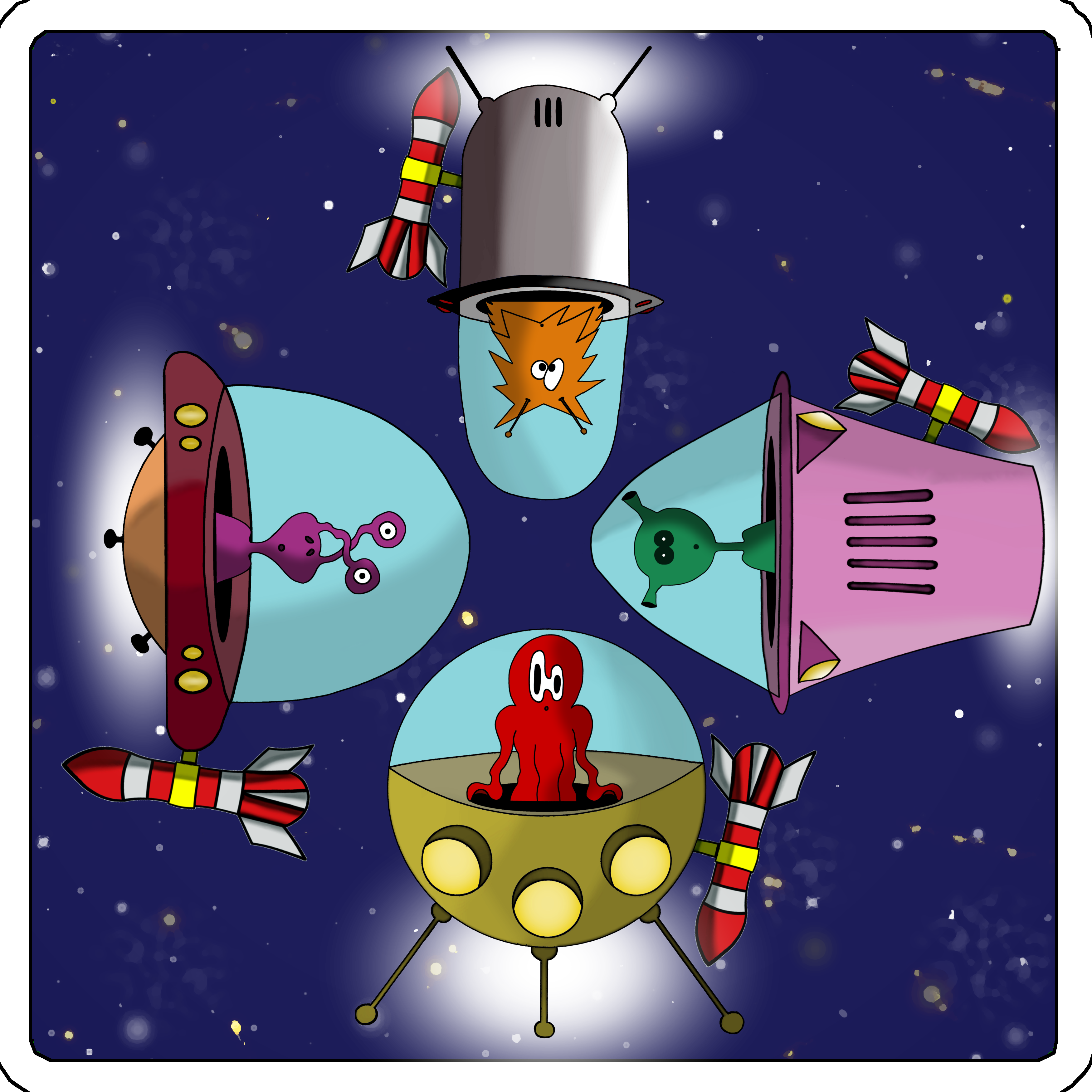 L’idée c’est de bien orienter votre carte pour positionner votre vaisseau ou/et votre extra-terrestre en position d’atterrissage, c’est à dire en bas de votre carte. Une fois votre carte jouée, vous en piochez une nouvelle et c’est au tour de votre voisin. En fin de partie, chaque vaisseau et chaque extra-terrestre de votre identité en position d’atterrissage encore présent n’importe où sur la zone de jeu va vous rapporter un point. Pour vous faire un peu de place (et au passage faire sauter un peu de points à vos adversaires) utilisez une carte « Zovnis » armé qui éliminera et défaussera toute carte adjacente avec au moins un point commun (extra-terrestre ou vaisseau). Et quand on élimine la carte d’en dessous, on descend… et on peut éliminer encore et encore… Sauf qu’une fois lancé, on est forcé et contraint d’effectuer toutes les éliminations possibles… Alors attention, cartes à consommer avec modération! Pour vous protéger de tous les affreux adversaires qui vous entourent, déposez une carte « astre » qui vous servira de bouclier. Voilà, vous savez presque tout… A la fin, le joueur qui comptabilise le plus de points remporte la partie!