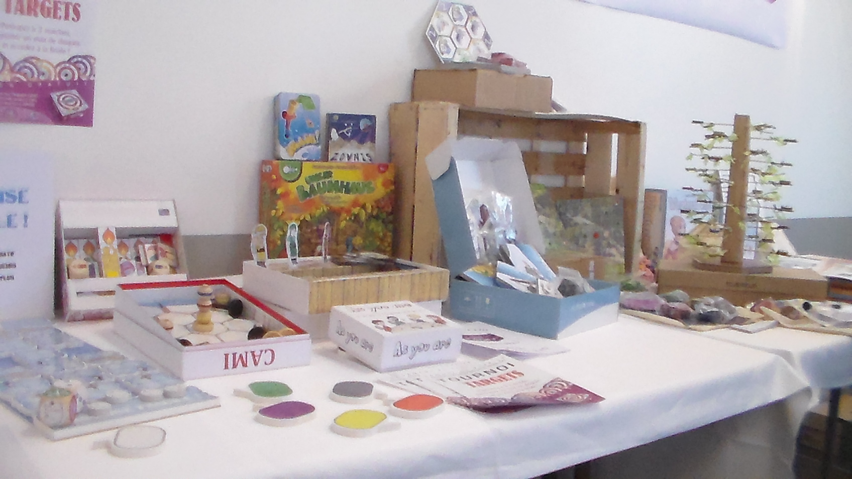 De notre côté, nous avons pu faire jouer à différents prototypes : « Banquise fragile », « Piratalo »…Et nos jeux déjà sortis comme Splash, Targets, Zovnis, Unser Bauhmaus…
