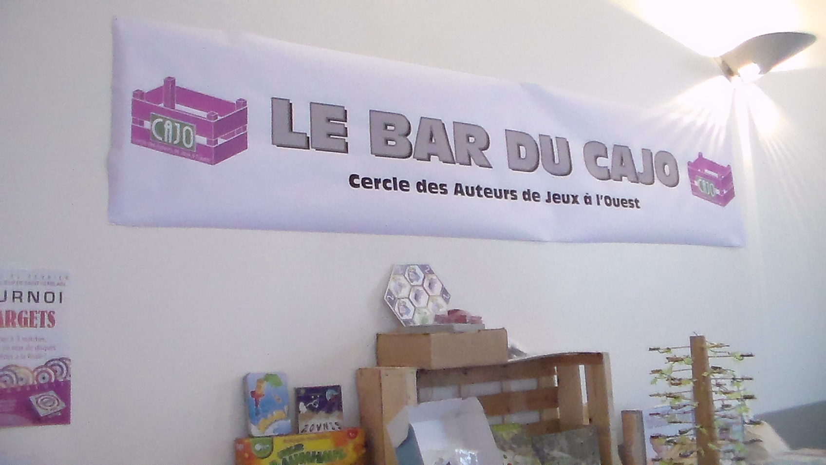 Nous étions dans l’espace créateur ! Pour l’occasion nous avions un espace « bar » CAJO où les jeux étaient à disposition et les auteurs au service des joueurs, une formule qui a bien plu…et qu’on renouvellera certainement l’année prochaine 🙂