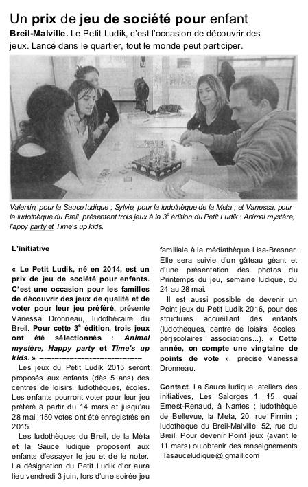 Happy Party se retrouve parmi les 3 sélectionnés pour le petit Ludik 2016! Un prix pour un jeu enfant où les enfants votent! Génial, non?!