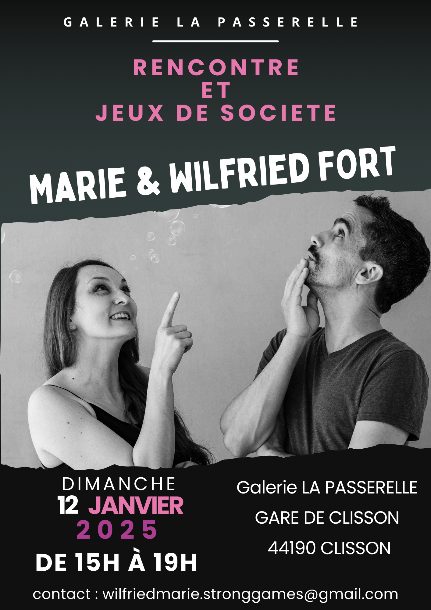 Retrouvez-nous le dimanche 12 janvier de 15H à 19H dans la galerie La Passerelle à Clisson !