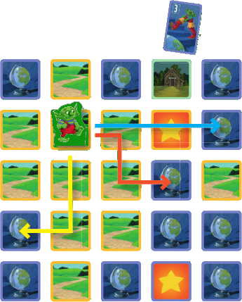Le Petit Ogre est curieux… il veut se faire des amis et voyager dans le monde. Tous ensemble, vous allez essayer de retrouver les 3 tuiles « amis » et les 3 tuiles « villes du monde ». Pour cela il faudra déplacer le Petit Ogre sur des tuiles chemin (grâce aux cartes voyage à pieds) ou des tuiles monde (grâce au cartes Bottes de 7 lieues). Attention, les cartes retour à la maison vous obligeront à revenir sur la tuile de départ et vous feront perdre un peu de temps…