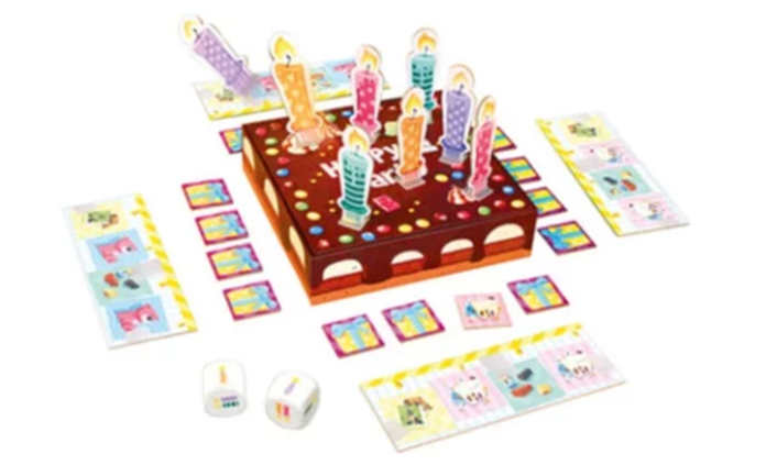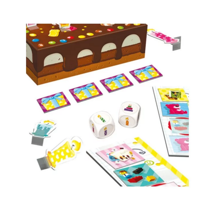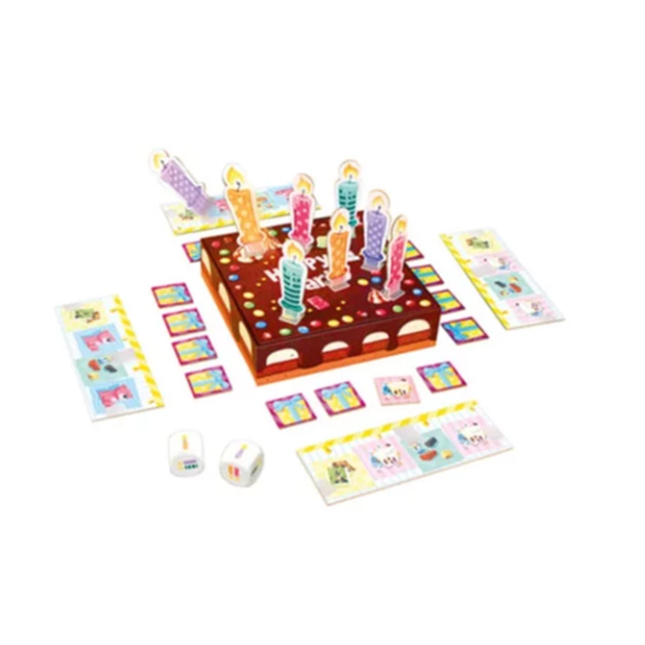 A son tour, il faut lancer les 2 dés puis souffler les bougies. Mais attention, seules les bougies de la couleur indiquée par les dés doivent être renversées ! Celui qui y parvient remporte un cadeau. Et si ce cadeau fait partie de sa liste de souhait, il peut le garder.