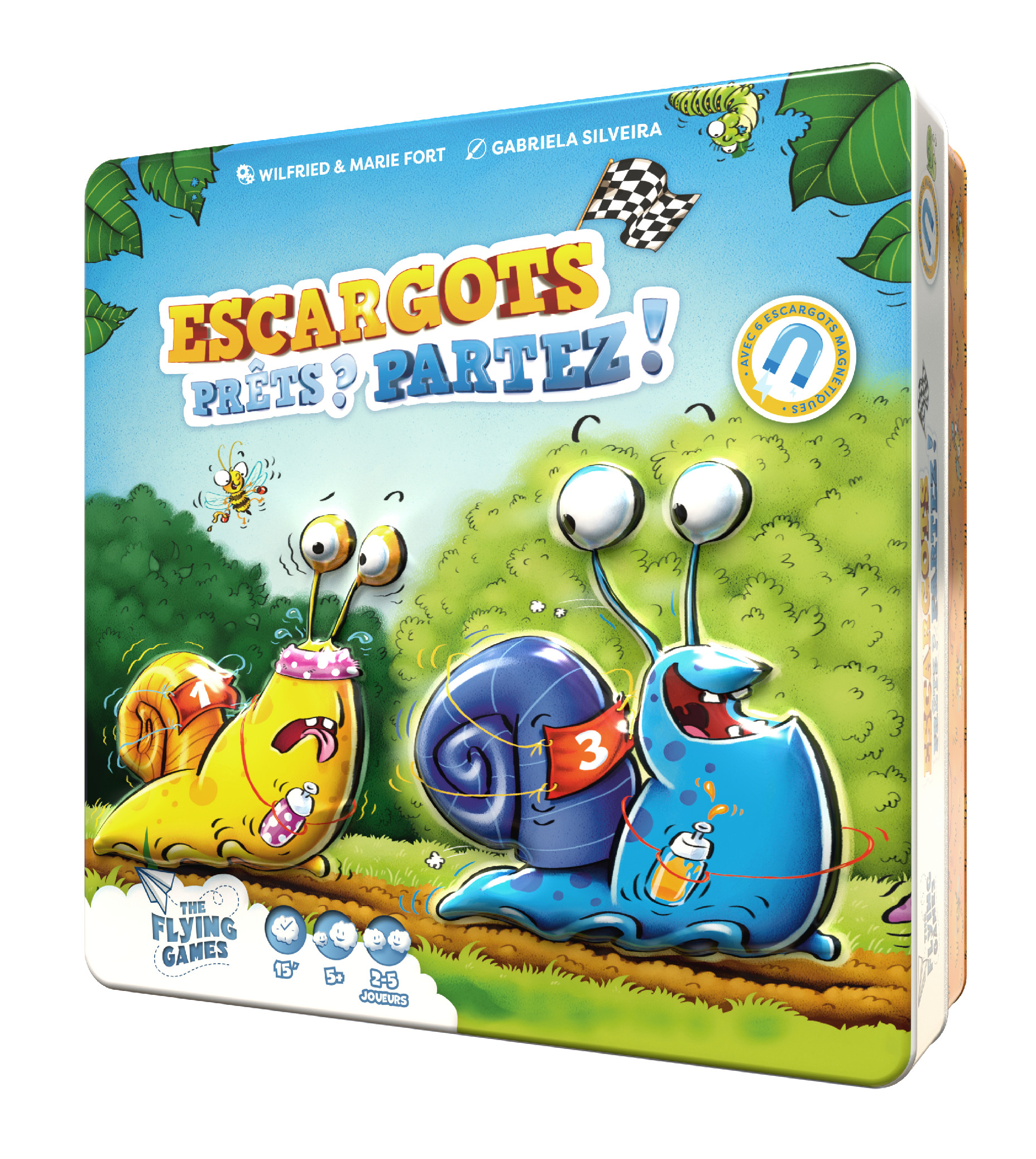 Après une première vie chez l’éditeur allemand Haba, Escargots, Prêts? Partez? revient avec son nouvel éditeur: The Flying Games !