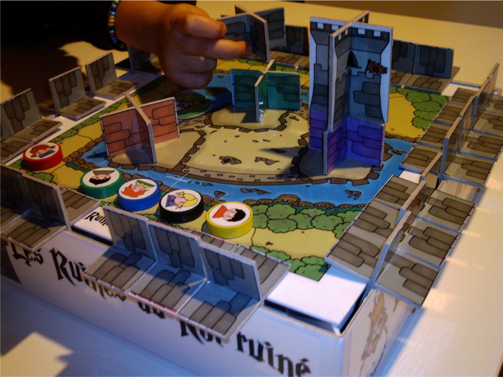 Le Roi Ruiné a besoin de vous! A votre tour de jeu piochez un élément autour du plateau, montrez le aux autres joueurs et repiochez un élément. Si ce nouvel élément est de la même couleur, continuez à piocher, sinon, remettez l'élément là où vous l'aviez pioché. Après avoir collecté un ou plusieurs éléments, il vous faudra les placer sur le plateau, à l'endroit indiqué par la couleur de vos éléments. Si vous réussissez, avancez du même nombre de cases que d'éléments déposés. Sinon, vous devrez soit reculer d'une case, soit tenter d'attendrir le Roi Ruiné en lui demandant pardon!