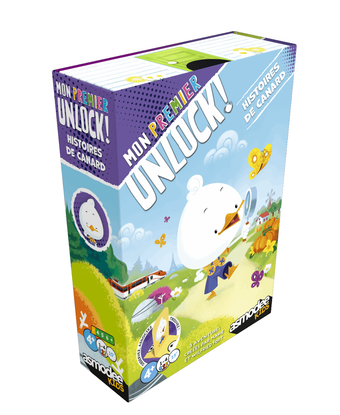 Plongez dans l’univers d’Unlock! dès 4 ans avec Mon Premier Unlock! et aidez Bernard le canard à accomplir ses missions. Observez bien les cartes qui forment un paysage et associez les demi-symboles visibles sur les cartes à l’aide du pion Bernard pour progresser dans l’histoire.