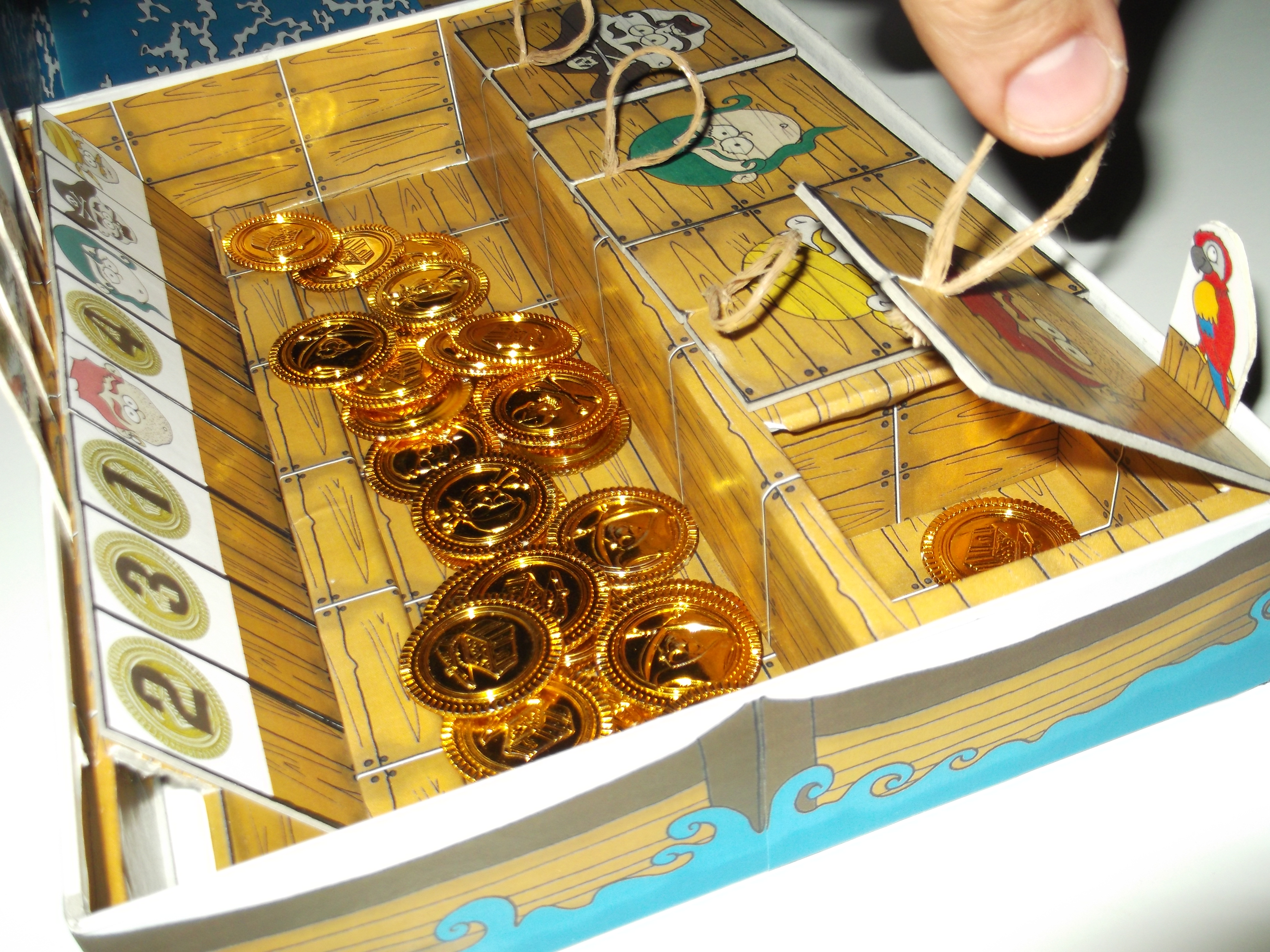Les joueurs vont à leur tour faire rouler un boulet de canon en direction des pancartes « têtes de pirate ». Chaque pancarte abattue fera avancer le pirate correspondant sur la planche en direction de l'eau. Attention à ce que votre pirate ne fasse pas le grand plongeon ! Si vous restez sur la planche, vous aurez droit à une partie du trésor !